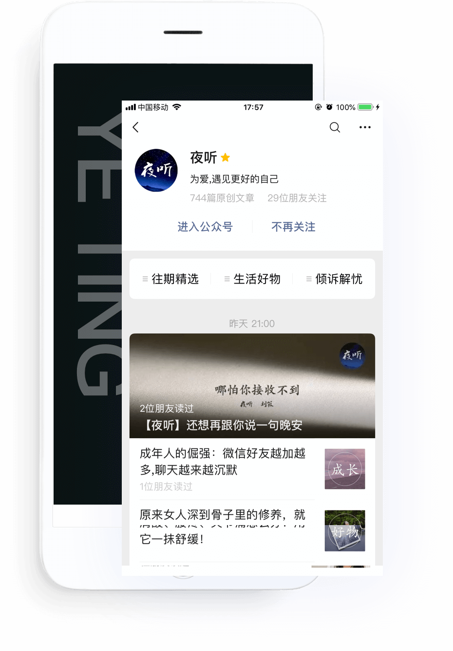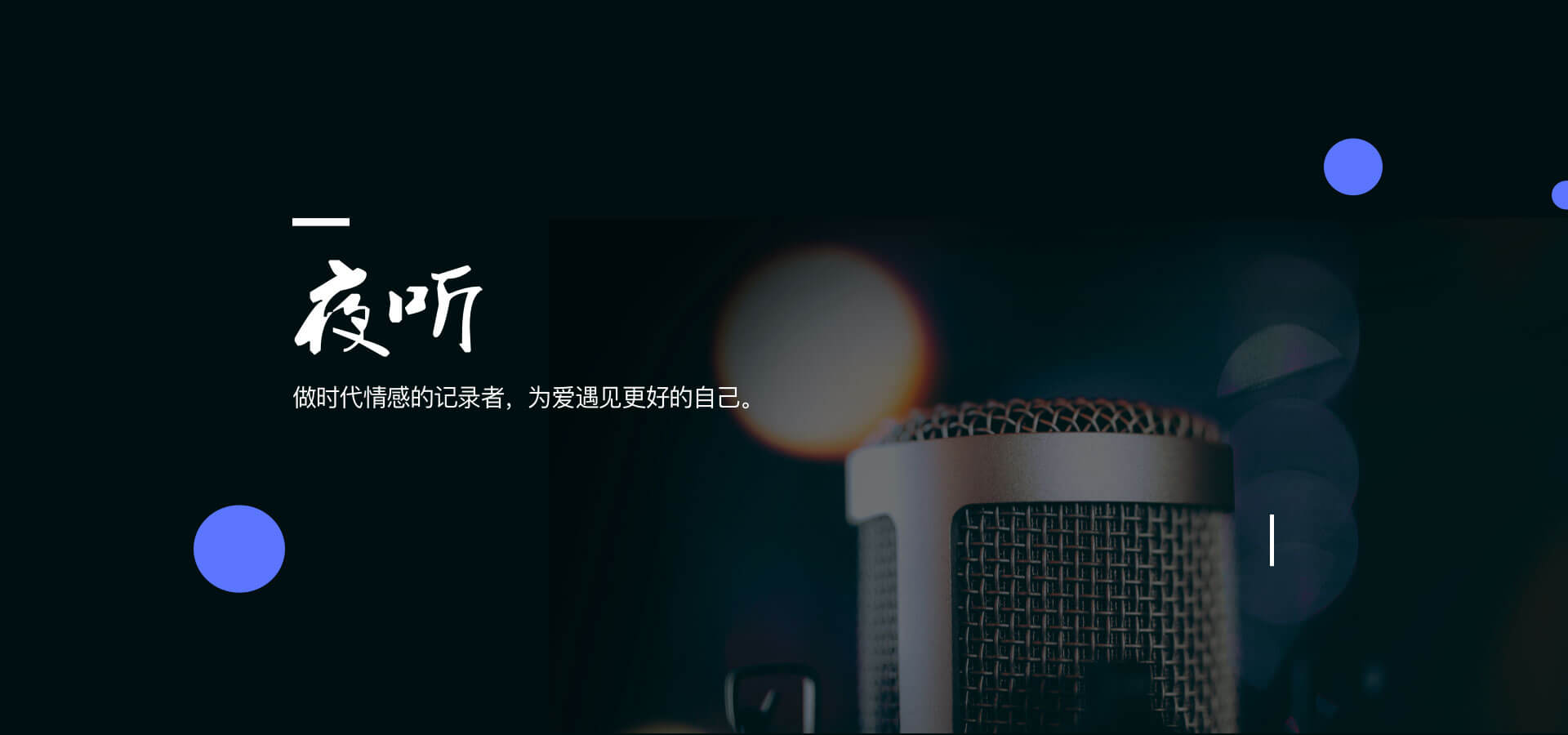 成立之初,夜听便立足于两性情感领域,通过创始人刘筱的音频,每天输出有温度、有价值观的情感解读内容。并在秉承“为爱遇见更好的自己”的理念下,不断尝试音频、视频、图文、漫画等多种内容形式,围绕“夫妻关系、亲子关系、个人成长”等维度输出贴近生活提升家庭幸福的优质暖心内容,引领与表达当代女性成长及家庭生活的主张。